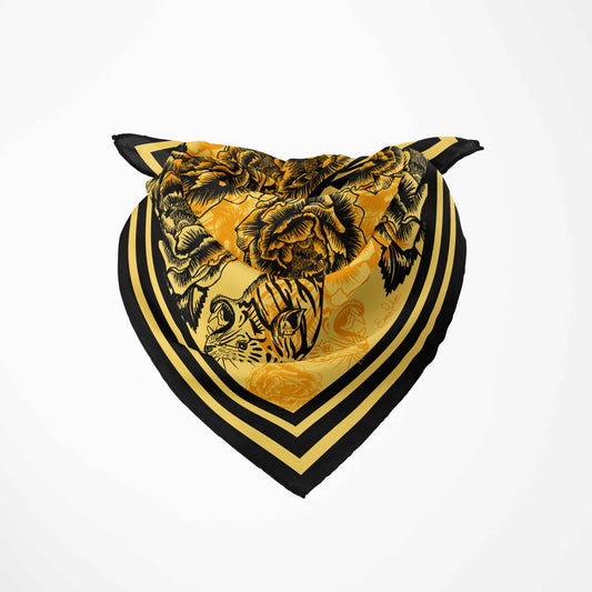 Wild Tiger & Peony 100% Silk Scarf